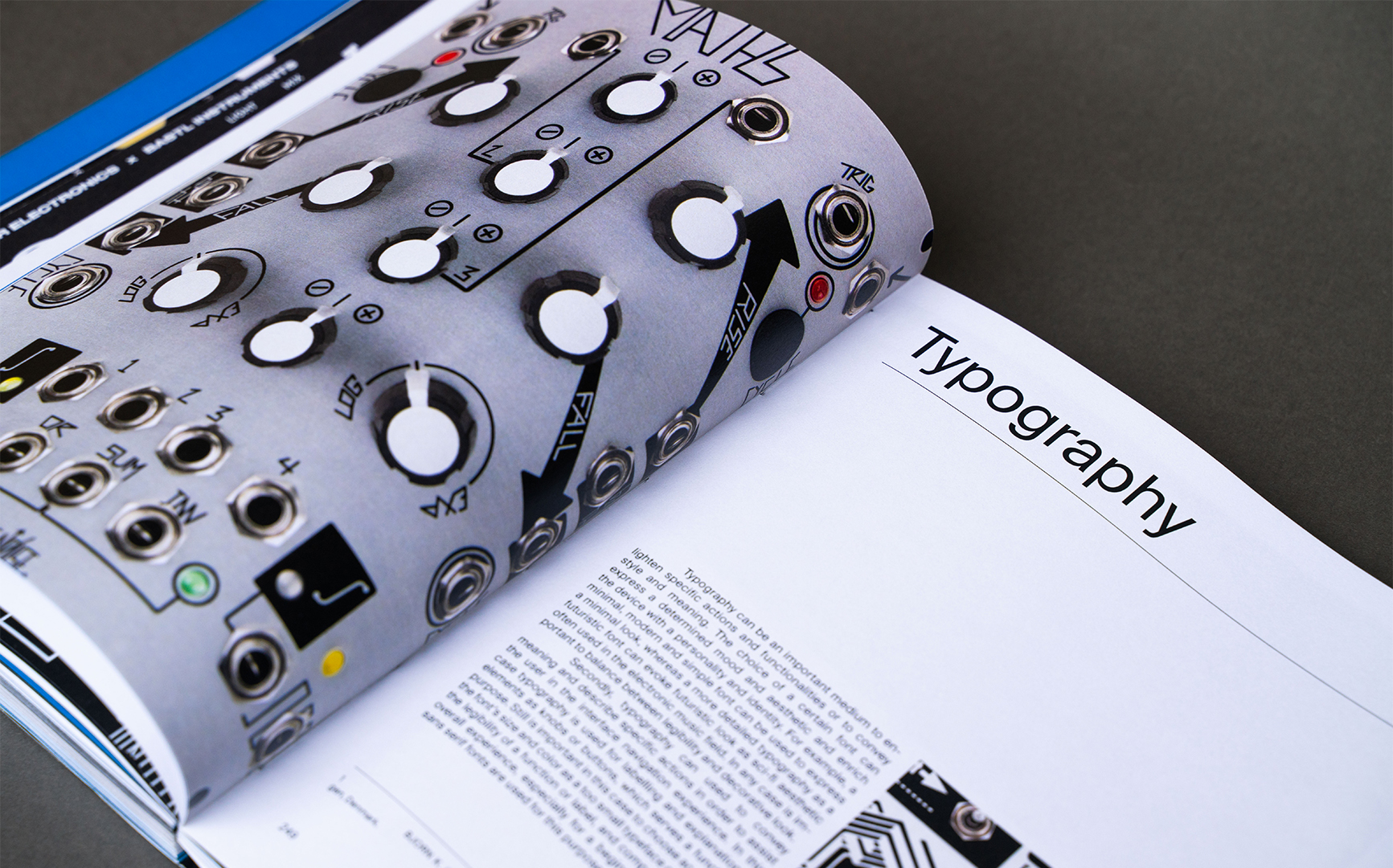"Soundscape" is a thesis project that analyzes the interface and graphic design of electronic music instruments. This editorial endeavor began as a research project focused on exploring the graphical design of electronic instruments. The research delves into a variety of topics, including the principles of sound visualization, the analysis of control elements, and the layout design of electronic music interfaces. Additionally, the project considers the graphic elements that shape these artifacts.